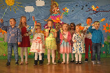 Przedszkolaki przystrojone w wiosenne stroje z wiosennym uśmiechem wyszły na scenę i odważnie zaśpiewały utwory pt. :