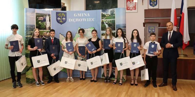 Tegoroczne spotkanie z najzdolniejszymi absolwentami i ich rodzicami odbyło się we wtorek, 22 czerwca 2021 r. w Sali Widowiskowej Urzędu Gminy Dębowiec. Znakomitych wyników w nauce pogratulował uczniom wójt Marcin Bolek. Życzył młodzieży sukcesów w kolejnych etapach edukacji.